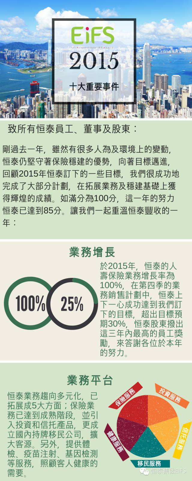 无论你是我们的员工、董事、股东、客户,我们得荣幸可以分享2015年恒泰丰收的一年。